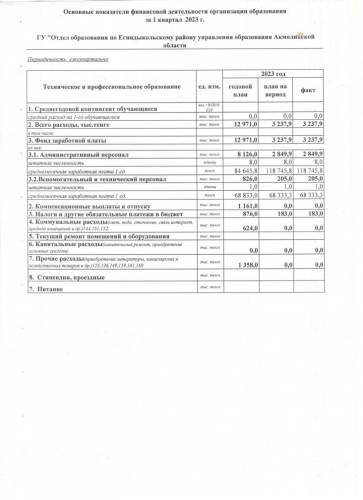 2023 жылғы" 01 " сәуірдағы жағдай бойынша"Ақмола облысы білім басқармасының Егіндікөл ауданы бойынша білім бөлімі" ММ қаржылық қызметінің негізгі көрсеткіштер